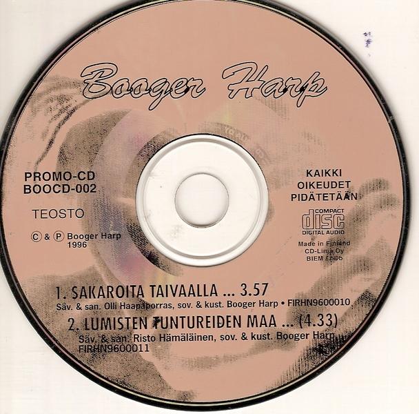 Booger Harpilta ilmestyi yksi vinyylisinkku, kasa cd sinkkuja sekä pitkäsoitto "Ihmeiden aikaa". Levyä on kovasti kyselty, etsitty kirpputoreilta ja kirjastoista, joten bändi päätti lahjoittaa levyn Sodisrockin sivuille kuunneltavaksi. Siitä suuri kiitos Boogereille.