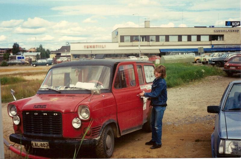 Playmaten ensimmäinen "keikkabussi" Ford Transit vuosimallia 1973. Kesällä pelitti oikein hyvin-talvella käynnistykseen tarvittiin 2 pilottipurkkia. Palveli hyvin tuhansia kilometrejä ja moottorin hajottua myytiin auto lähes ostohinnalla innokkaille roomani miehille jotka välittivät romujen varaosia.Kuvassa Marko Keinonen, joka oli Playmaten Manageri, keikkakuski, "auttava"roudari=bändin poikien lapsenvahti...Jos jollakin on toimiva vastaava paku, niin otappa yhteyttä sodisrockiin !